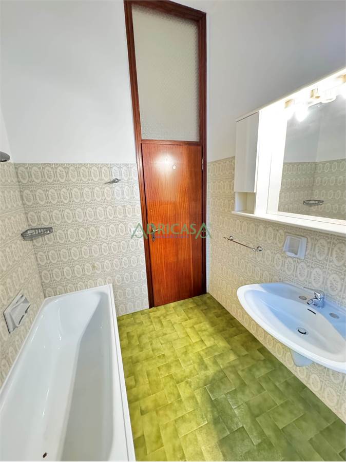 Primo piano: ingresso, sala con balcone, sala da pranzo, cucinotto, due camere da letto matrimoniali, una camera da letto singola e bagno.