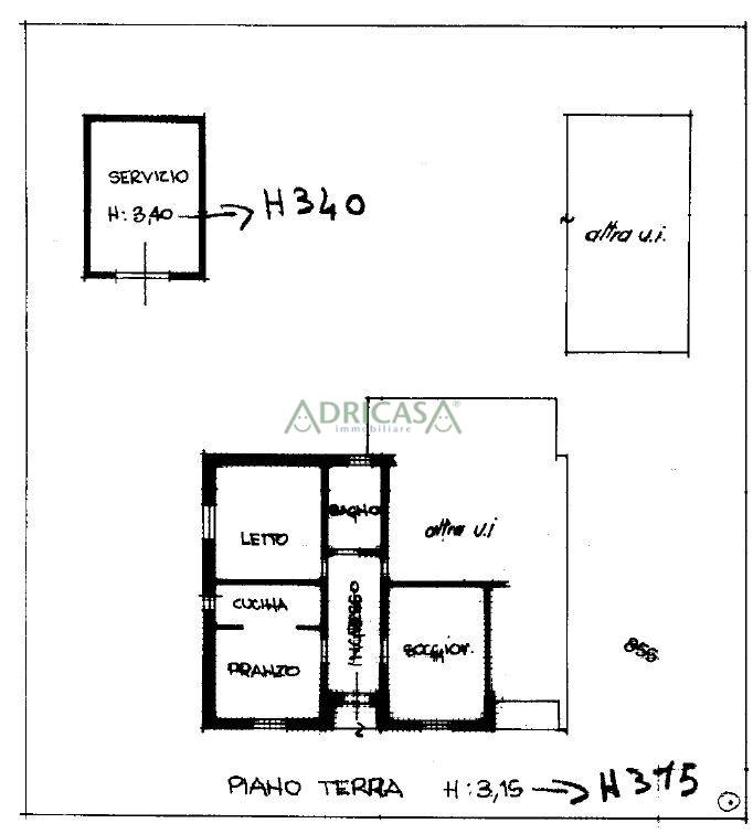 A seguire, all'esterno abbiamo, un servizio di 22 mq e un garage di 32mq.