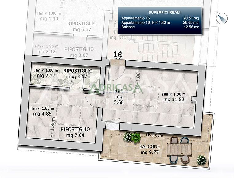 SECONDO LIVELLO - Mansarda (26,04 m² comm.li / 59,82 m² reali):