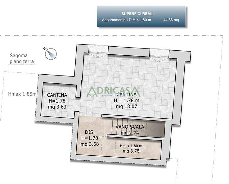 Possibilità di acquisto separato Cantina di 18 m² comm.li (44,86 m² reali).