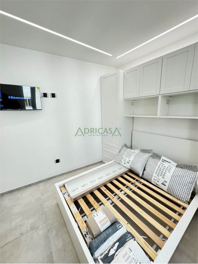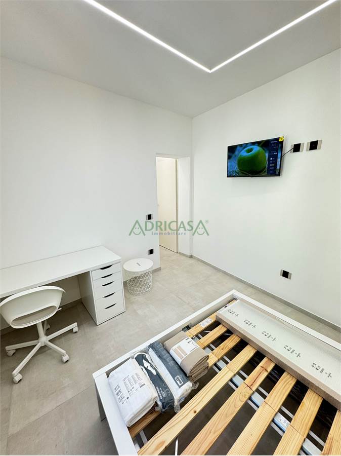 L'immobile è così composto: ingresso, ampia sala, angolo cottura separato, due camere da letto matrimoniali, di cui, una con studio, bagno finestrato con box doccia.