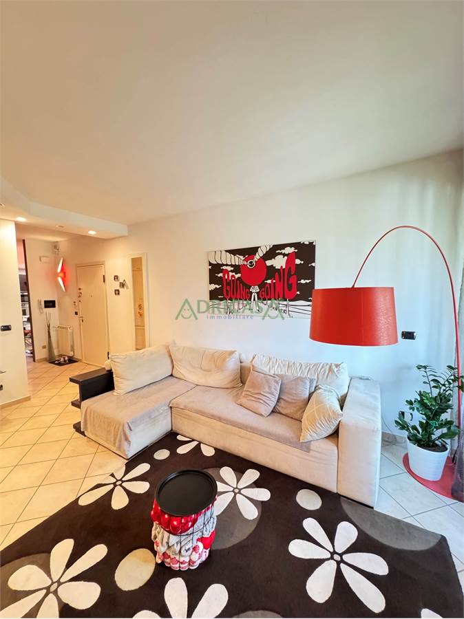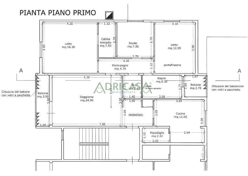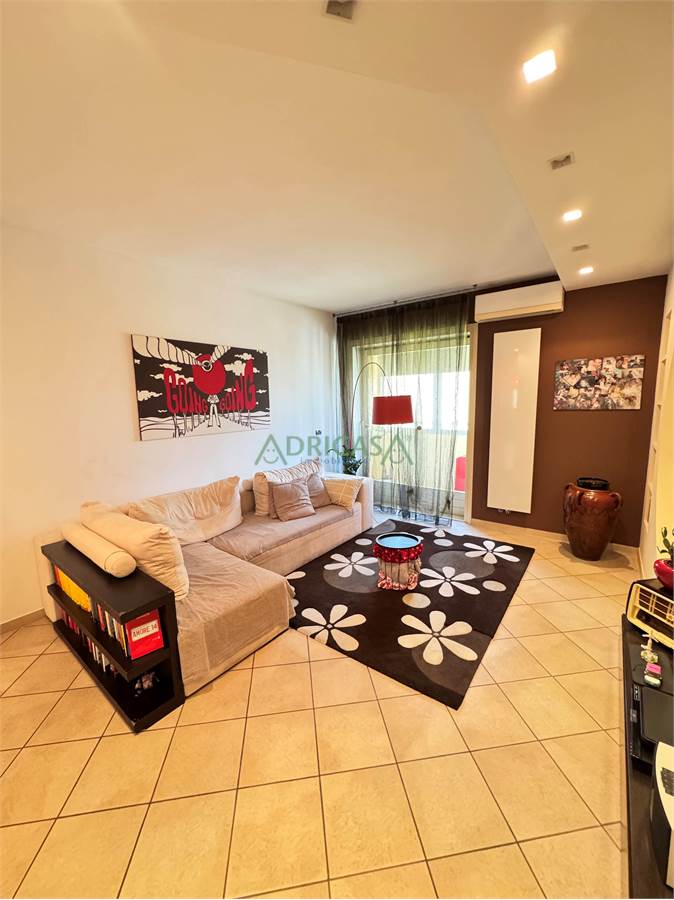 La zona giorno è così disposta: ingresso, un ampia e accogliente sala con balcone, disimpegno , cucina abitabile, e ripostiglio.