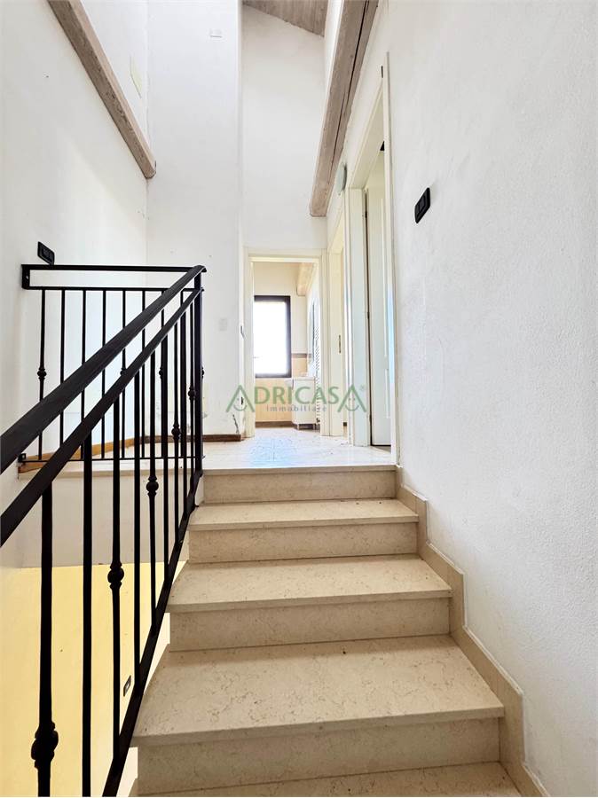 Salendo al piano superiore si accede alla zona notte, composta da una camera matrimoniale con balcone, una camera singola e un bagno.