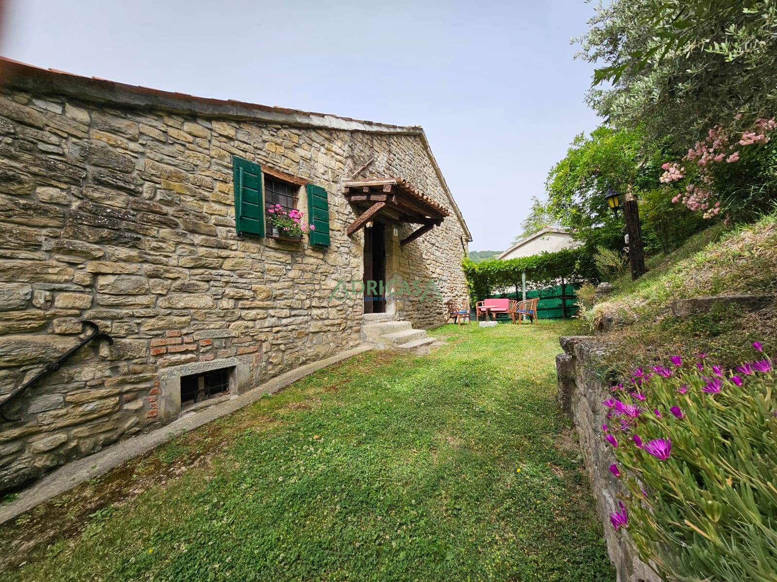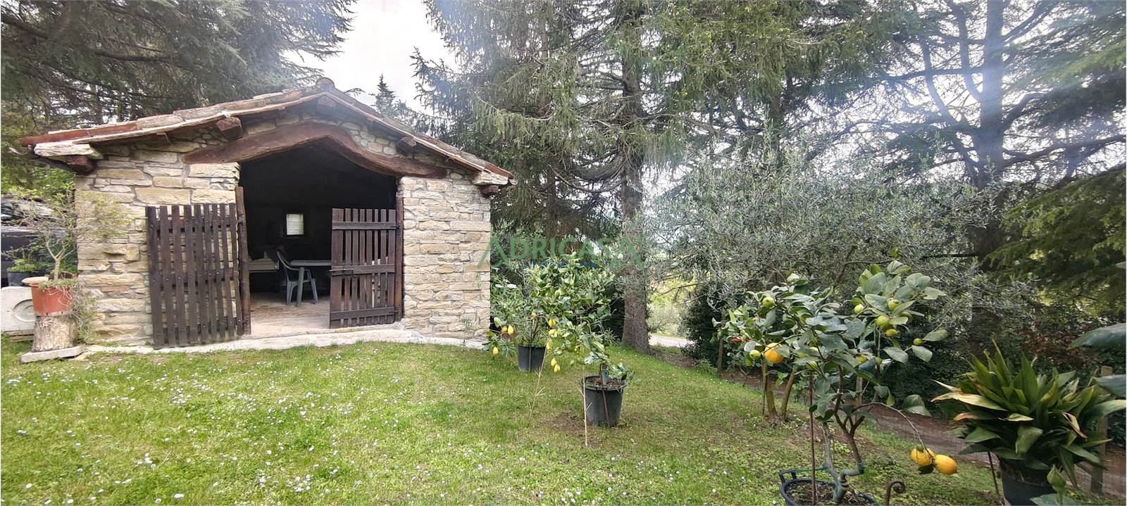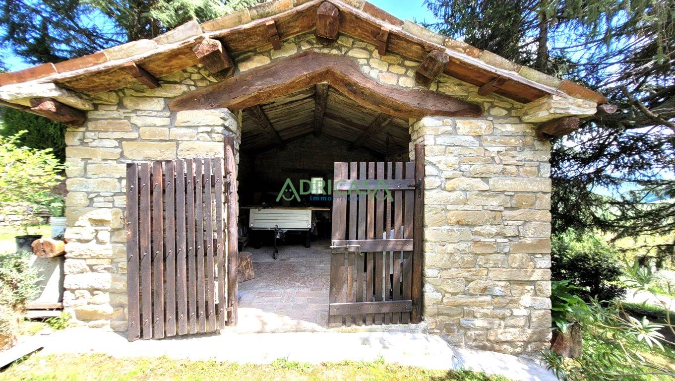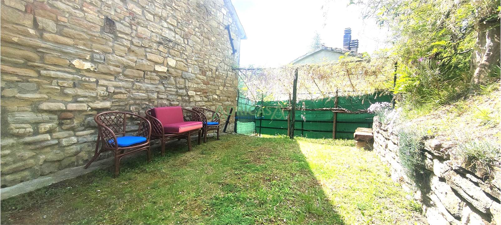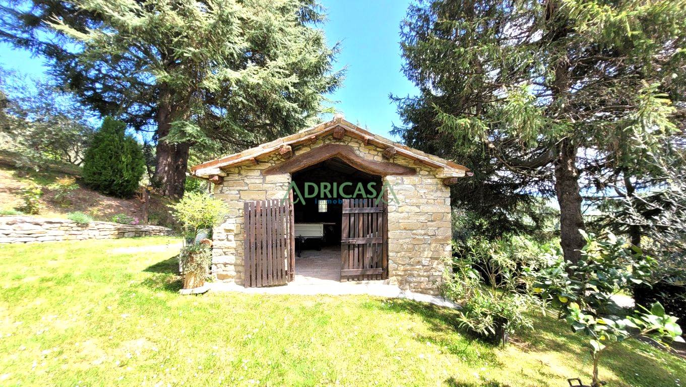 Nel giardino completo di illuminazione e recintato, è presente una piccola attrezzaia sempre in sasso, oltre ad un gazebo da godere nei mesi estivi.