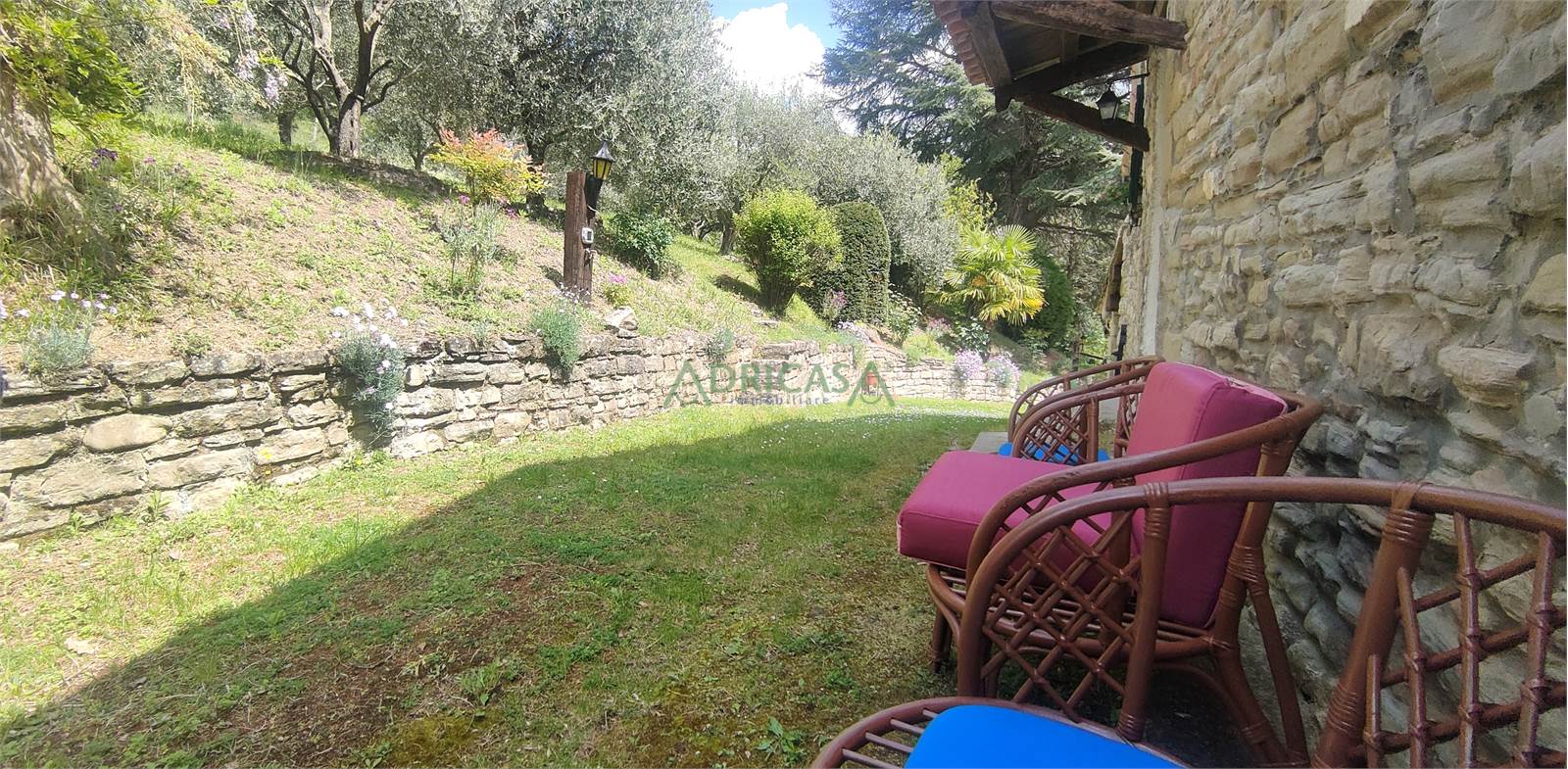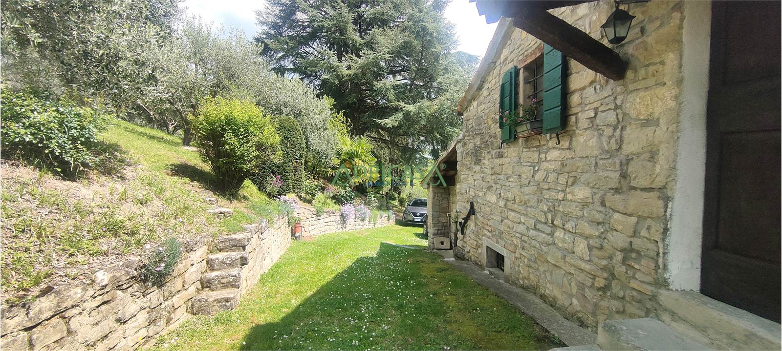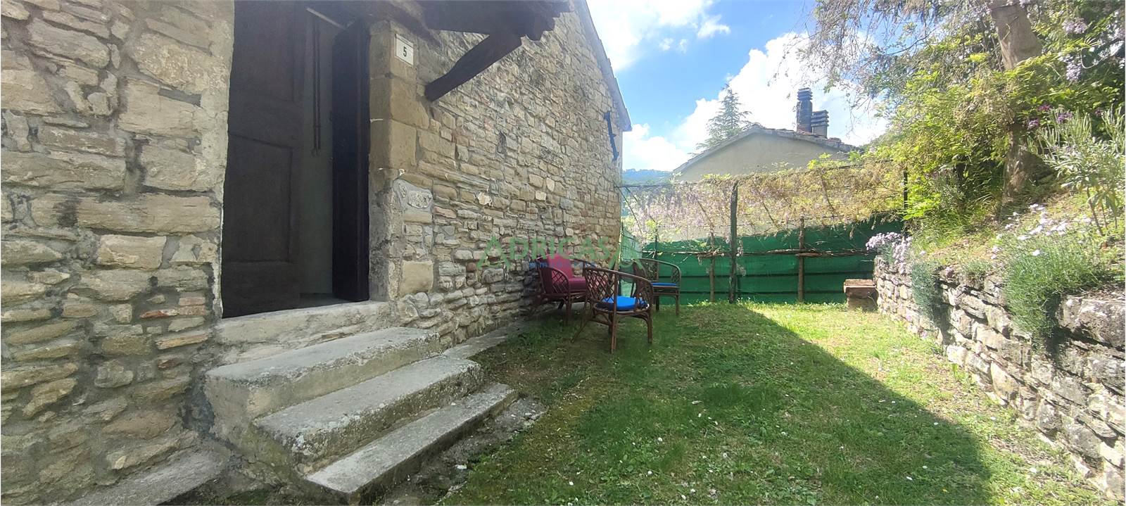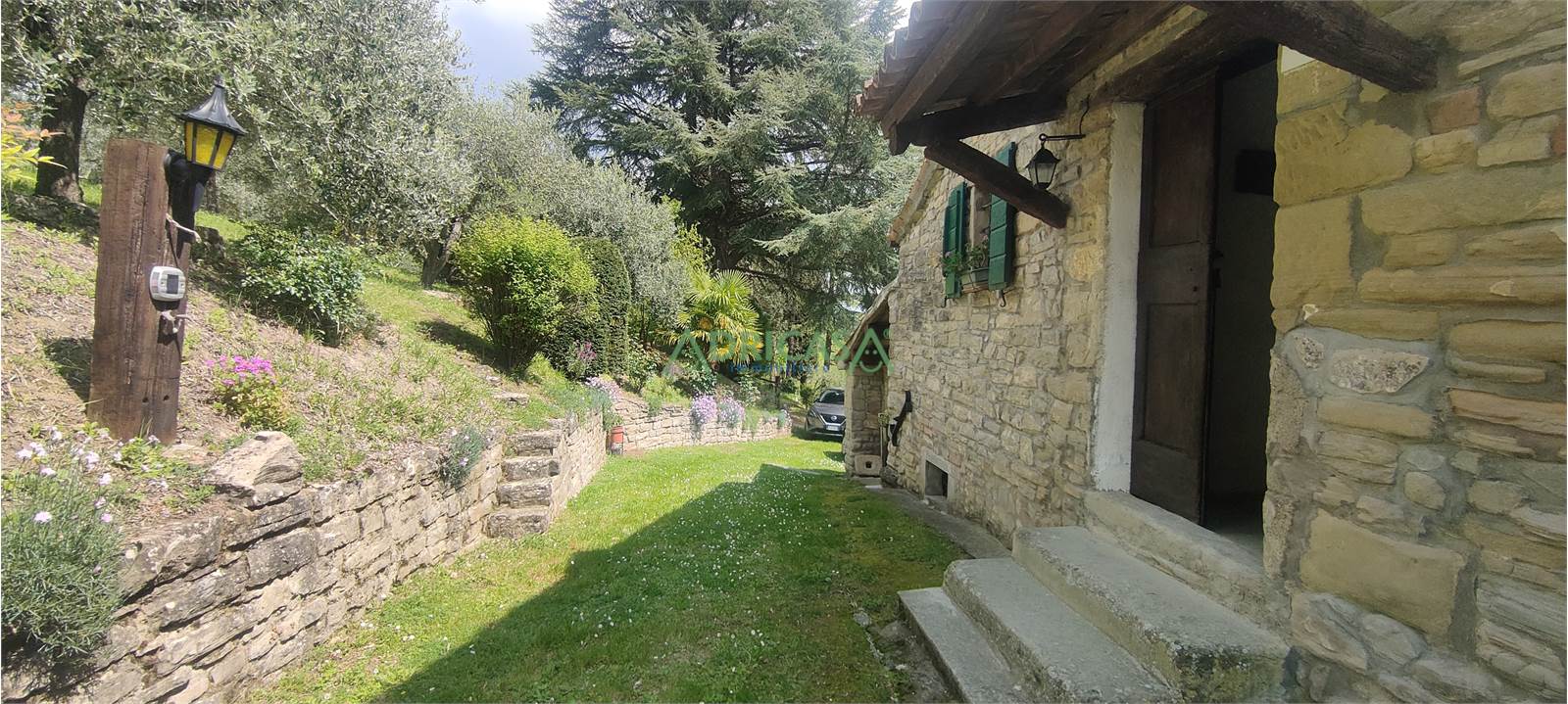 Nel giardino completo di illuminazione e recintato, è presente una piccola attrezzaia sempre in sasso, oltre ad un gazebo da godere nei mesi estivi.